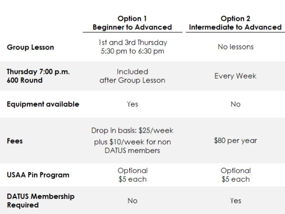 While 107 and DATUS work together, they are separate entities. The 107 is an officially registered USA Archery club. DATUS is a nonprofit, private archery range that has generously agreed to host the 107’s events. If you join the 107, your membership does not include DATUS membership. DATUS membership provides you with 24/7 access to the range and a discounted monthly rate for the JOAD program. The 107 Archery Club encourages members to become DATUS members. Membership is simple to obtain and provides valuable knowledge and friendships. Families in the 107 Archery Club JOAD and AAP programs are encouraged to join DATUS. For more information, visit datusarcheryclub.com or consult a 107 staff member.